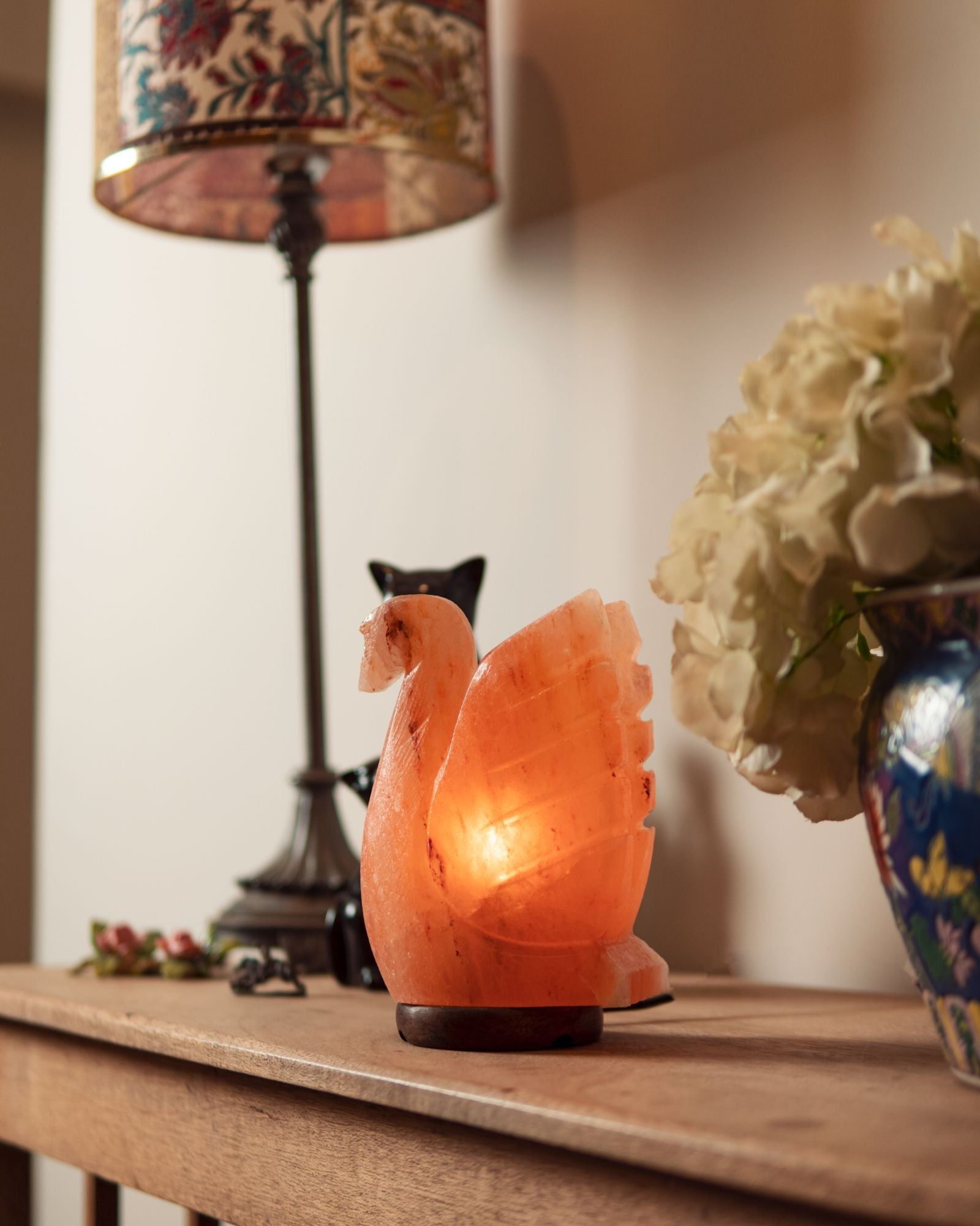 The Serene Swan is grace carved in salt. A handcrafted swan shape glows warmly, adding elegance, calm, and a touch of artistry to your space.